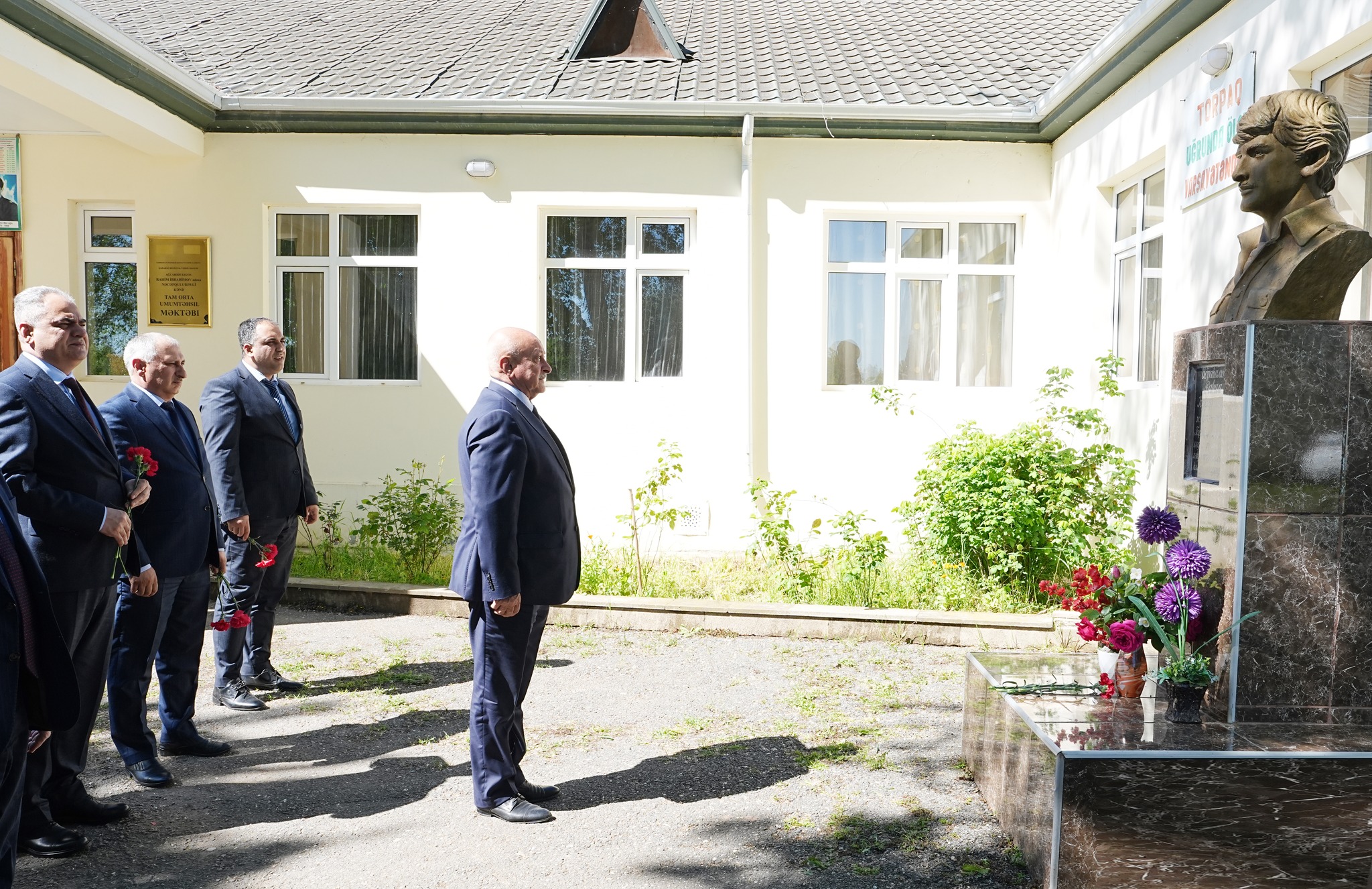Tədbir iştirakçıları əvvəlcə qəbulun keçirildiyi məktəbin həyətində Birinci Qarabağ müharibəsi şəhidi Rahim İbrahimovun büstünü ziyarət etmişlər. Abidə önünə tər çiçəklər düzülərək, Vətən uğrunda canından keçmiş qəhrəmanın xatirəsinə dərin ehtiram ifadə olunmuşdur.